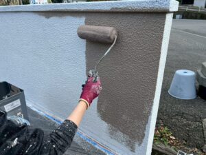 前回下地処理終了した塀に中塗りを塗っていきます!