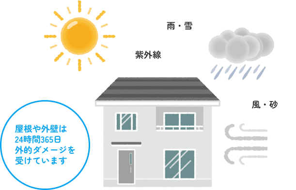 逆に、塗替えを長年おこなわずに外壁の劣化状態を放置していると、雨漏りの原因やシロアリの発生につながることも。外壁が劣化していれば、屋根はそれ以上に劣化している可能性が高いです。